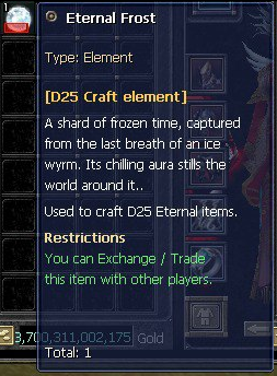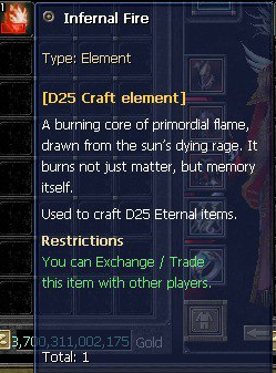 DG25 Set and Accessory process is the same. it only requires you to get 10.000x Infernal Fire/Bloodroot Crystal/Eternal Frost per set/accessory part.
